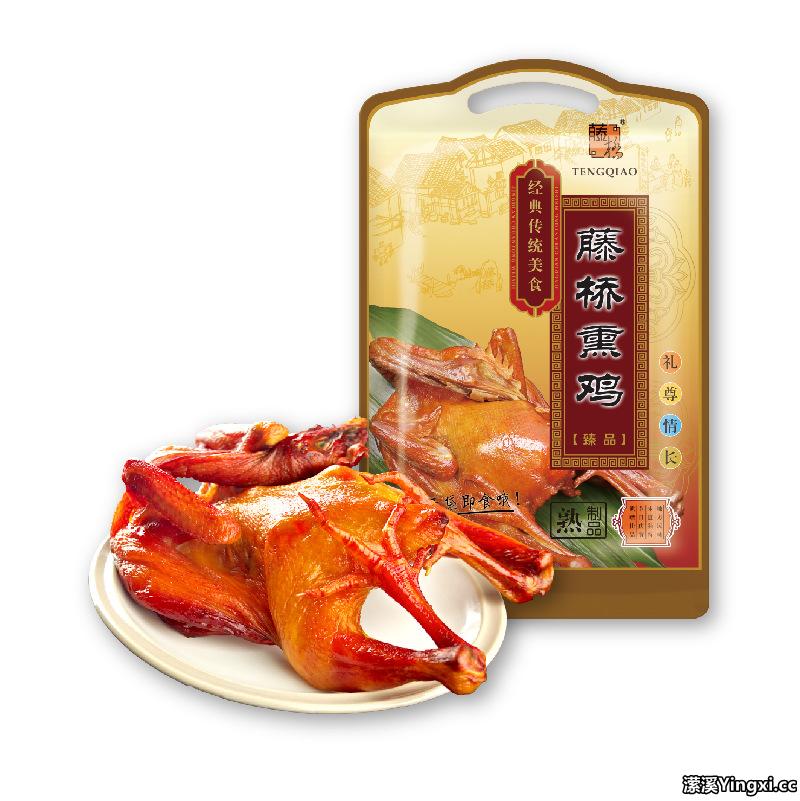 藤桥熏鸡是藤桥食品有限公司的主打产品,也是该公司备受消费者喜爱的产品之一。它是以藤桥本地鸡(又名三黄鸡,山地放养,以谷物作饲料)作为主要原料经六道工序加工而成。其成品色泽嫩黄鲜亮,味道醇香浓郁,回味无穷。